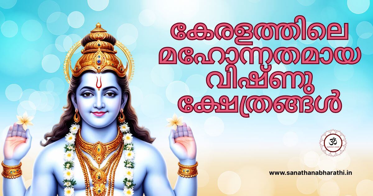 കേരളം ദേവഭൂമിയായി അറിയപ്പെടുന്നത് അനവധി വിശുദ്ധക്ഷേത്രങ്ങളുടെ സാന്നിധ്യത്താലാണ്. ത്രിലോകനാഥനായ ശ്രീമഹാവിഷ്ണുവിന്റെ അനുഗ്രഹം തേടിയെത്തുന്ന ഭക്തർക്ക് മനസ്സിലവസാന ശാന്തിയും ആത്മീയ ഉണർവുമാണ് ഈ ദിവ്യസ്ഥലങ്ങൾ നൽകുന്നത്. ഐതിഹ്യപാരമായും ഭക്തിപരമായും അതുല്യമായ മഹാവിഷ്ണു ക്ഷേത്രങ്ങളെ കുറിച്ച് അറിയാം.