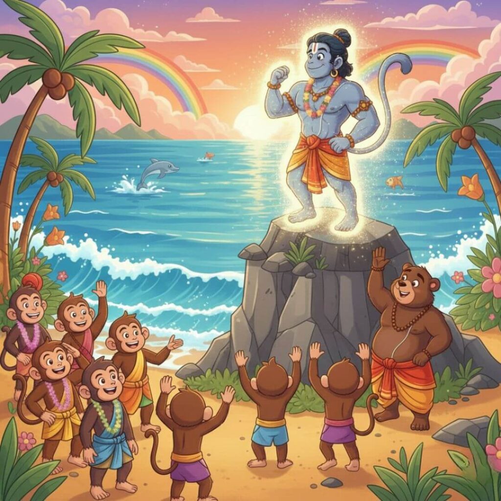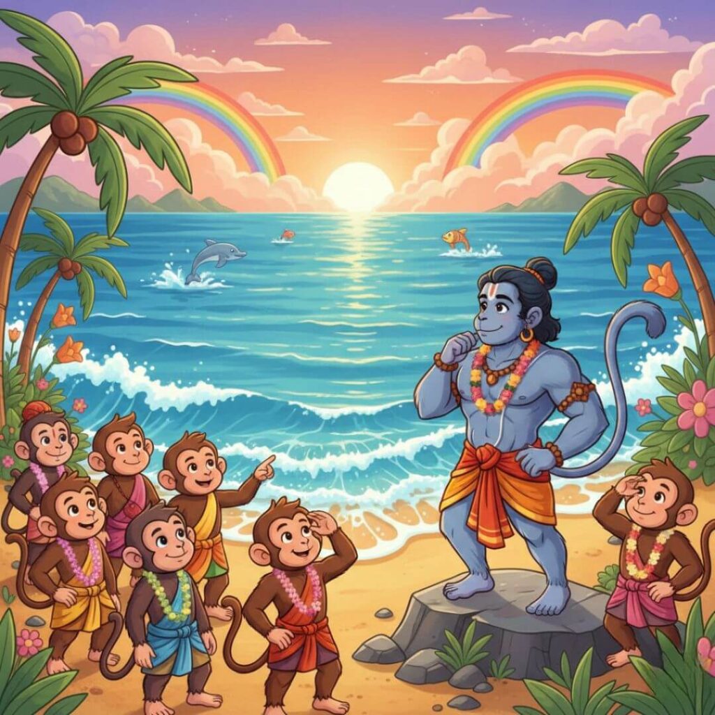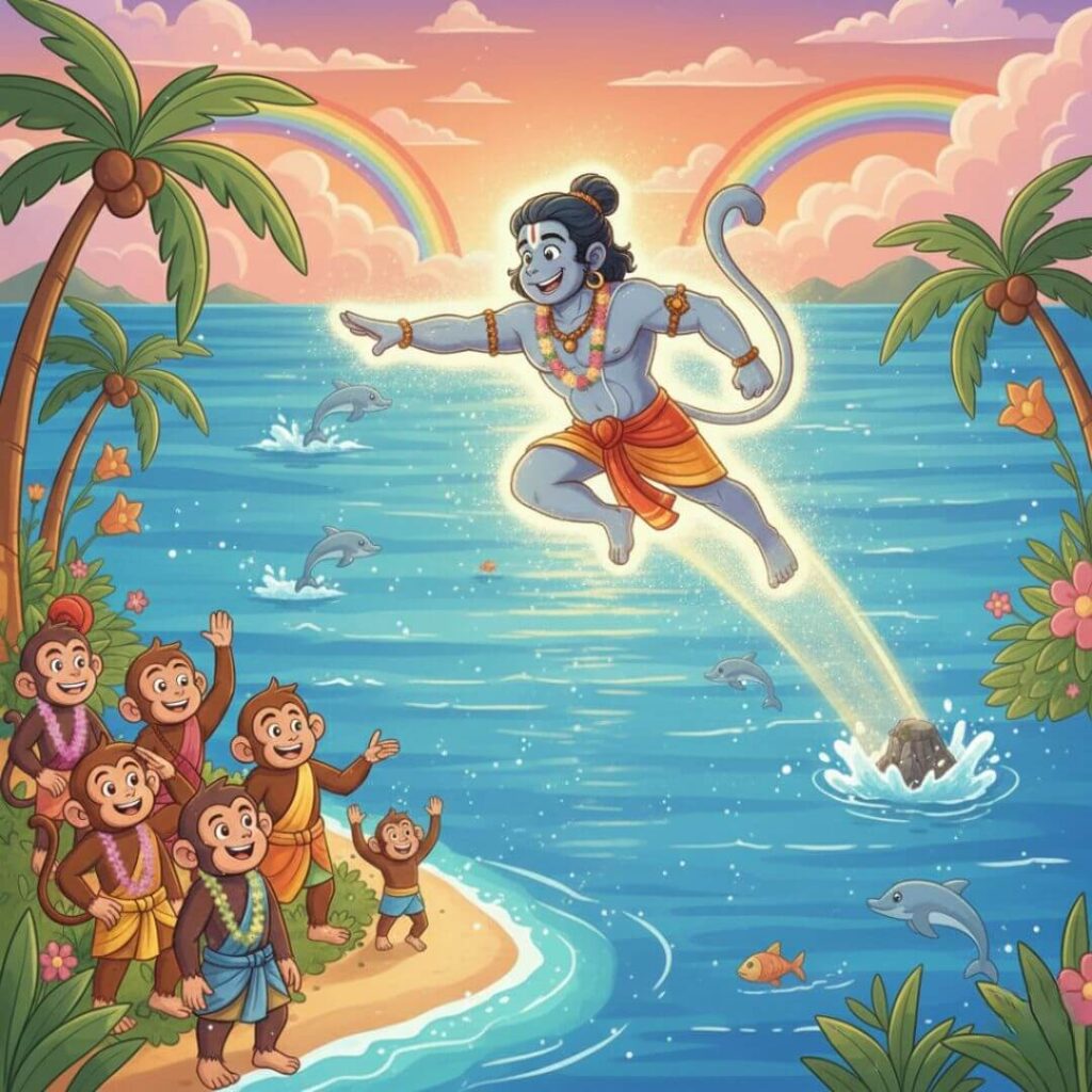 കടലിന് മുകളിലൂടെ പക്ഷിയെ പോലെ പറന്ന് ഹനുമാൻ മുന്നേറി.
