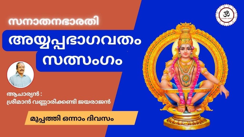 വൃശ്ചികമാസത്തിലെ 41 ദിവസത്തെ മന്ദലകാലശ്രമത്തിന്റെ പശ്ചാത്തലത്തിൽ, അയ്യപ്പഭാഗവതത്തിലെ ഉപദേശങ്ങളും ജീവിതപാഠങ്ങളും മനസ്സ് ശുദ്ധീകരിക്കുന്ന ഒരു ദീപ്തിപഥം പോലെ പ്രവർത്തിക്കുന്നു. ശ്രീ വണ്ണാരിക്കണ്ടി ജയരാജൻ ആചാര്യൻ അവതരിപ്പിക്കുന്ന ഈ സത്സംഗങ്ങൾ, അയ്യപ്പസ്വാമിയുടെ ഭക്തിപാരമ്പര്യം മനസ്സിലാക്കാനും ജീവിതത്തിൽ ധർമ്മം വളർത്താനും സഹായിക്കുന്നു.